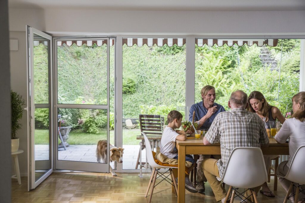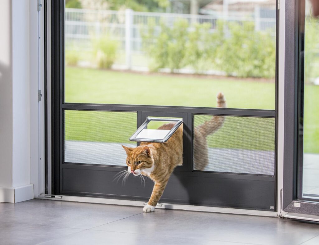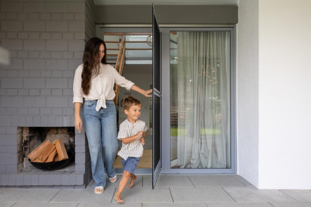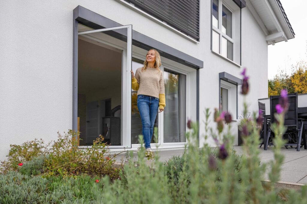 Die Pendeltür öffnet in beide Richtungen und schliesst selbstständig. Sie ist robust, leicht zu bedienen und bietet zuverlässigen Schutz vor Insekten – ideal für Balkon und Terrasse.